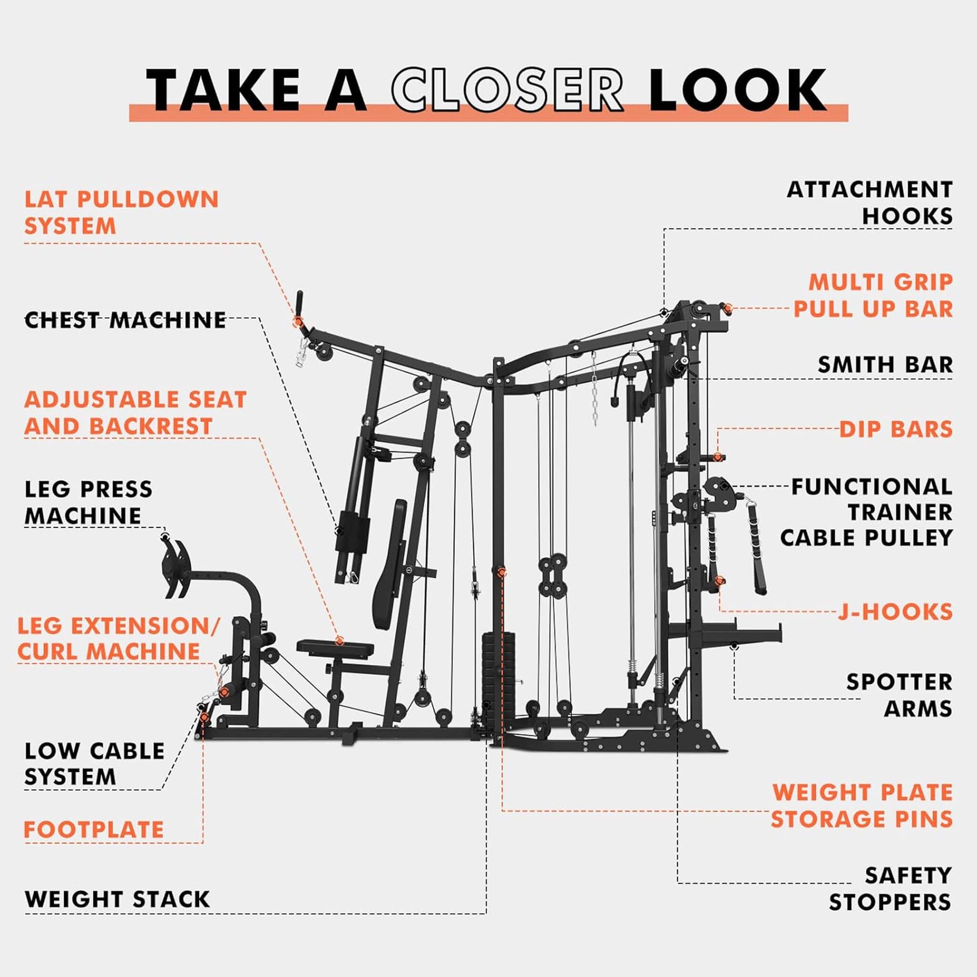 Rovix Dual Station Smith Machine With Cable Crossover Home Gym (SAK24079)